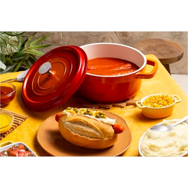by Mundial Cast-Aluminum Dutch Oven Pot with Lid and Handles All Stove types Oven-Safe Casserole Cookware with Nonstick Enamel Orange 20L