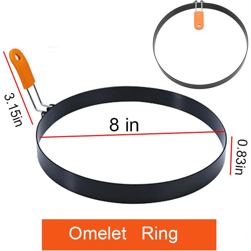 2pcs Large 8-Inch Omelette & Pancake Ring Suitable for Griddle - Non-Stick Egg Mold with Silicone Handle, Round Omelet Maker for Pancakes, Hash, & Leakproof