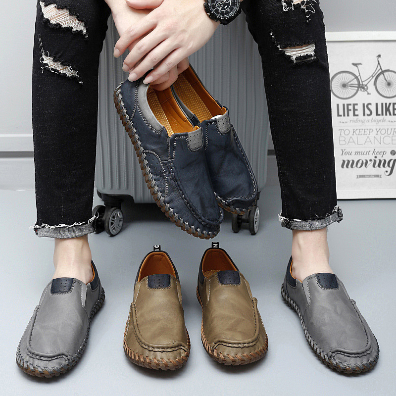 Oversized Men'S Footwear, Crafted with Hand-Stitched Casual Designs, Slip-On Shoes for Easy Wear, Comfortable Driving Shoes for Dads.