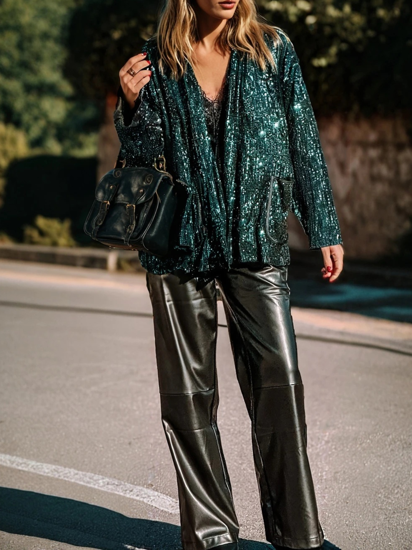 Sparkling Sequin Glitter A-Line Dressable Top - Elegant Long Sleeve Blouse with Open Front Door Collar, Party Wedding Guest Outfits, Spring/Autumn Clothing (No Buckles/No Panels) - Hand Washable Sequin Blouse