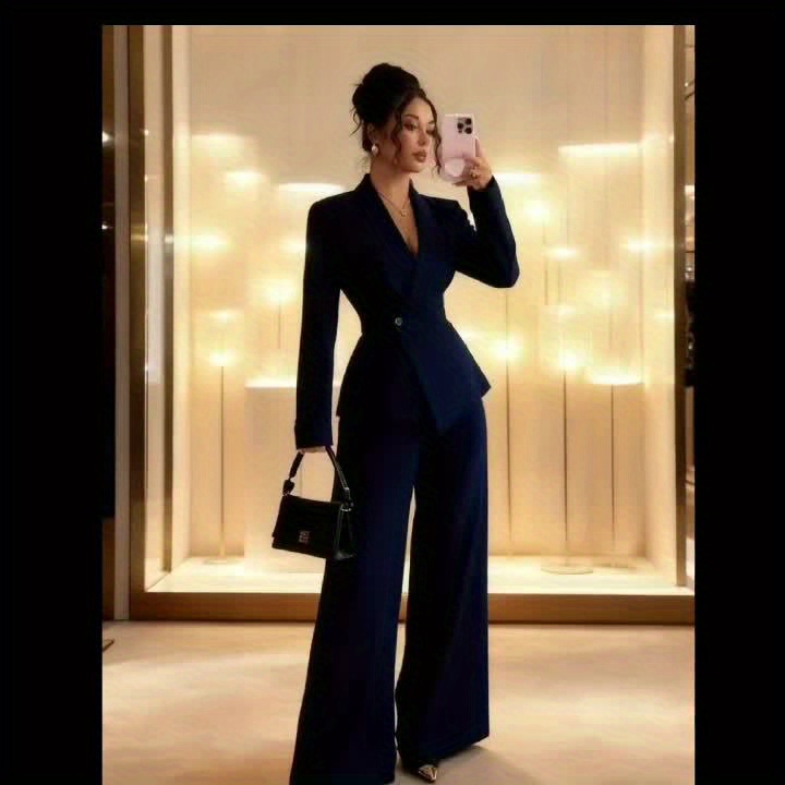 Fall/Winter Women'S Elegant Fashion Long-Sleeve Blazer & Straight-Leg Pants Two-Piece Set Premium Professional Wear For Women