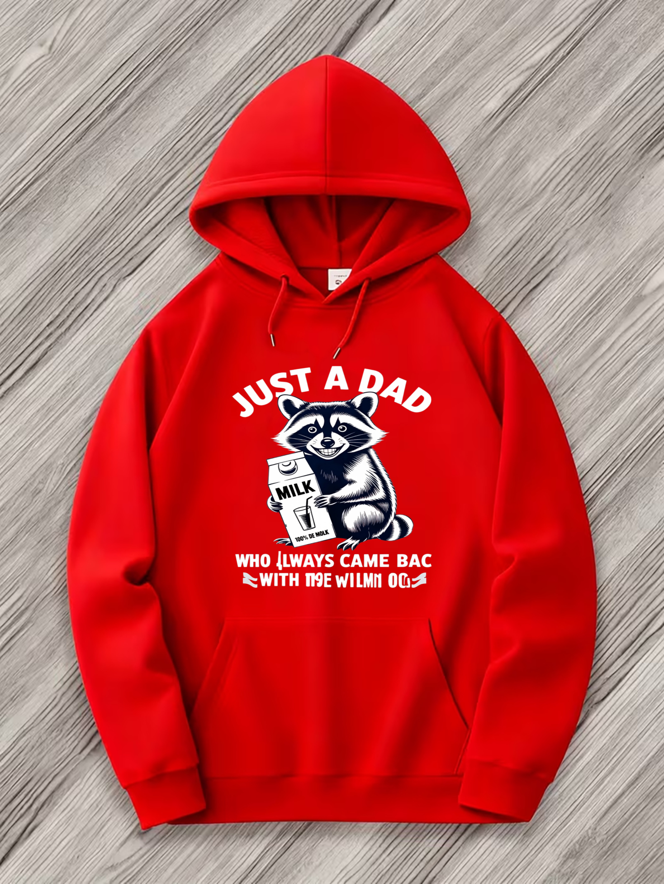 Men's Plus Size Raccoon Milk Carton Dad Hoodie - Anime Graphic Hooded Sweatshirt with Raccoon Face & Milk Carton Print, -Elastic Fabric, 4 Colors (Machine Washable), Winter Warmth for Casual Wear & Valentine's Gifts, PLUS SIZE