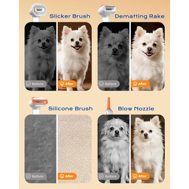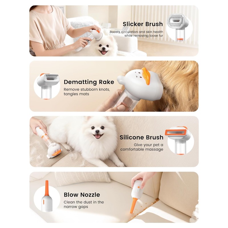 4-in-1 Self-Cleaning Dog Hair Vacuum Brush with Undercoat Rake & Slicker Brush - Deshedding Grooming System, Anti-Static Massage, 90% Hair Capture, Light Beige-Friendly for Shedding for Short/Medium Coats Dogs (No for double-Coat Breeds)