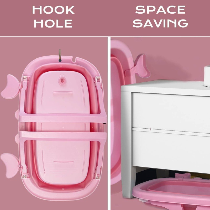 Foldable Portable Dog Bath Tub with Drainage Hole & Toys - Pink Pet Bathtub Shower Tub, Easy Storage for Small/Medium Dogs & Puppies, Shower System, Compact Bathing Station (26.5"x17.2"x7.8")