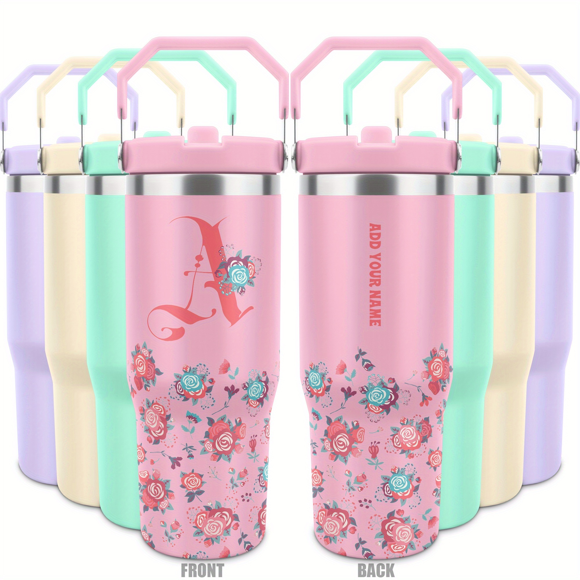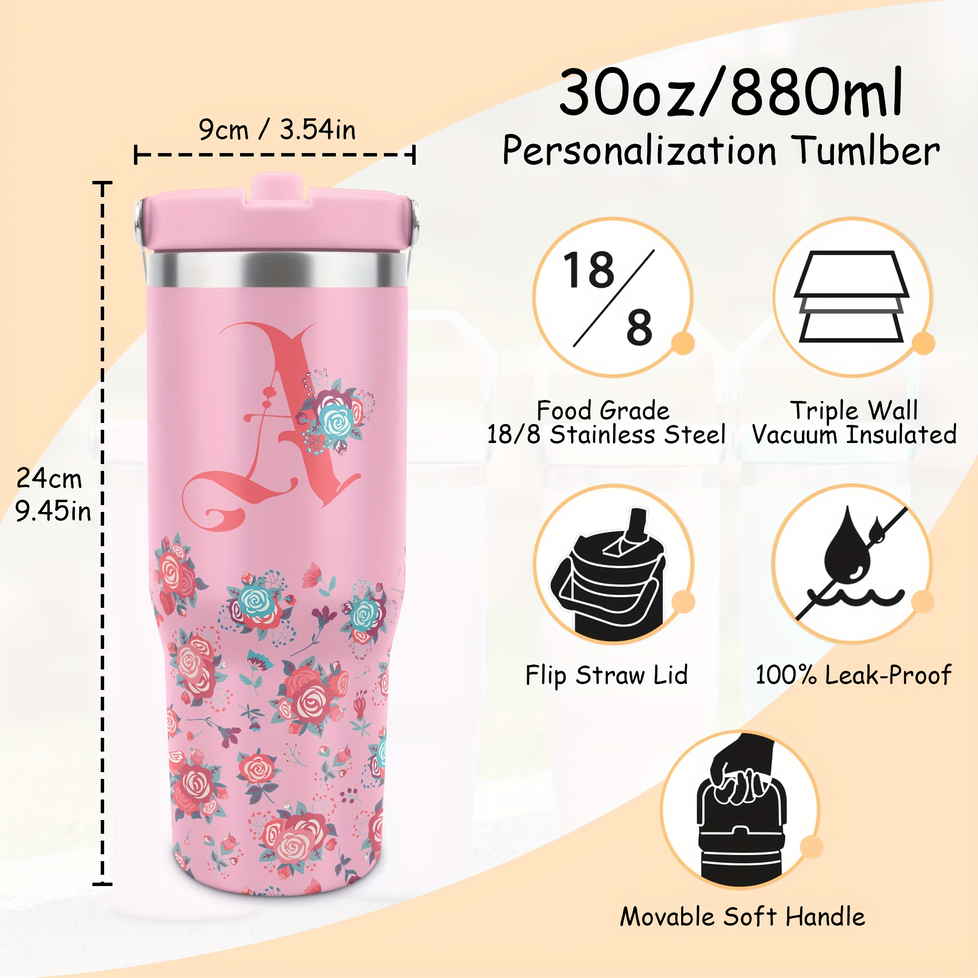 1pc 30oz Water Bottle/Time Marker/Flower Letter Print/Personalized Letter Print/LeakProof Design/Straw Lid/Gym Office