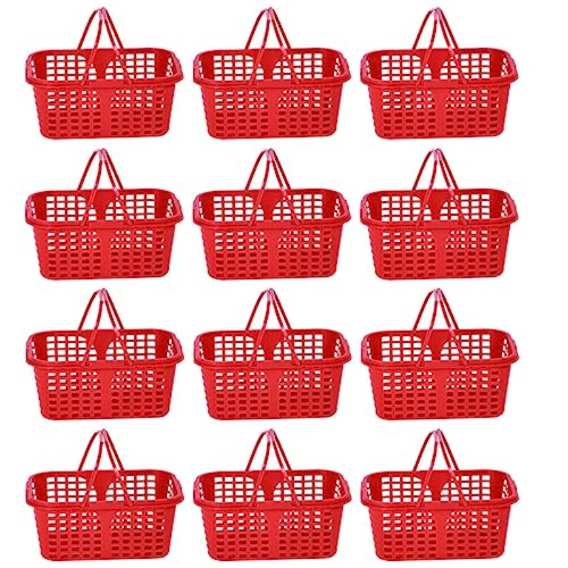20pcs Cabilock Plastic Fruit Baskets with Bohemian Wave Patterns & Red Lid-like Hinges - Heavy-Duty Collapsible Mini Shopping Baskets, Sturdy Handle Containers for Strawberry Cherry Picking,, Storage (
