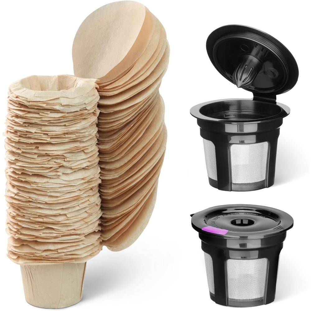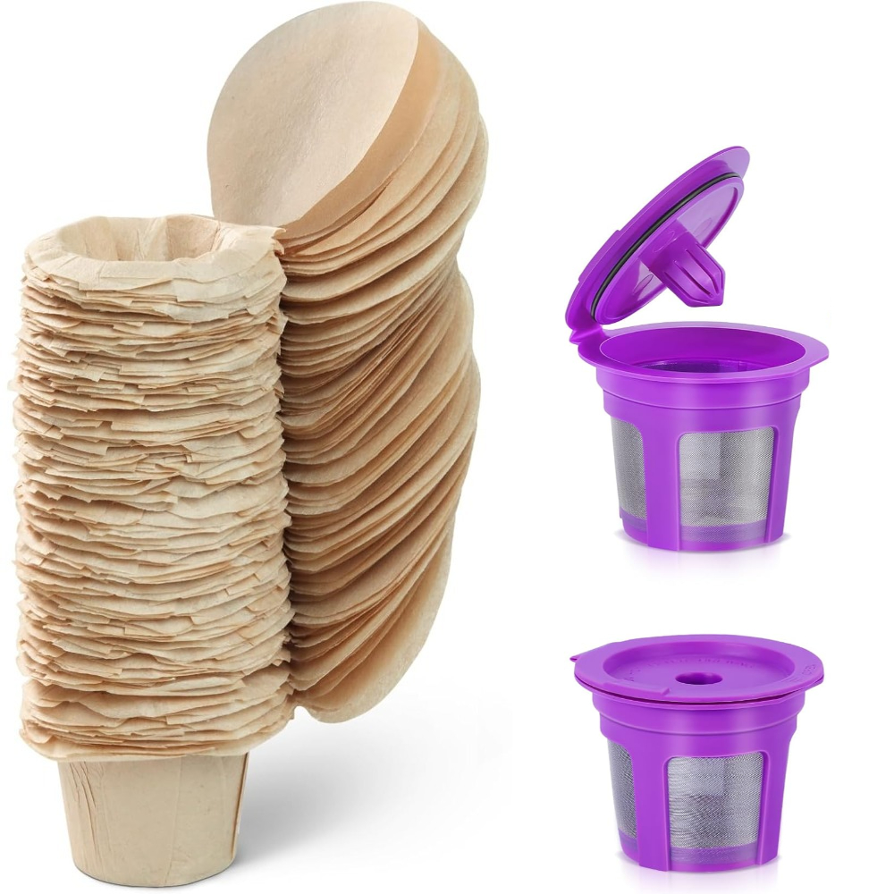 2-Pack K Cups and 100 Count K Cup Filters Disposable with Lid | Made of Paper, Includes Lids for Convenient Use