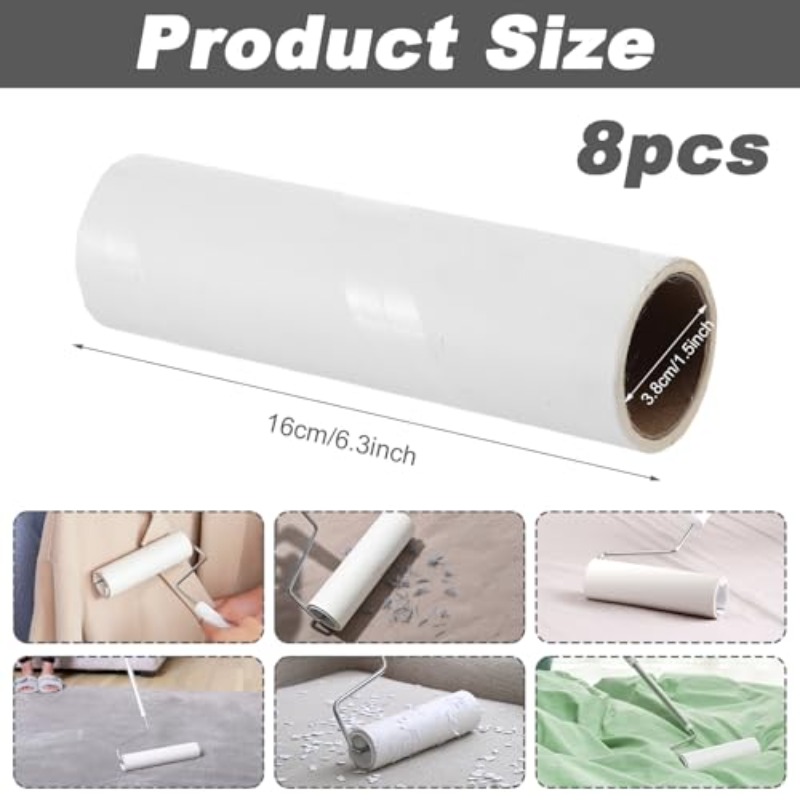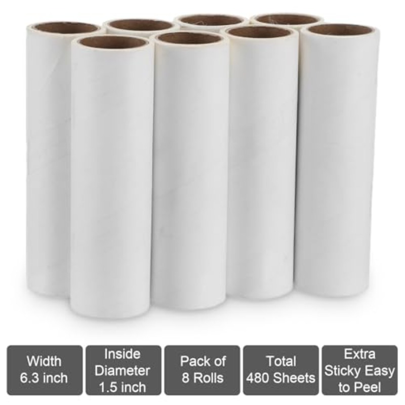 6.3 Inch Wide Lint Roller Refills Value Pack 8 Rolls Extra Sticky Pet Hair Sticky Roller Refills for Floor Couch Carpet Bed Clothes Pack of 8 Total 480 Sheets, Lint Roller for Pet Hair, Pet Hair Remover, Lint Roller for Clothes, Fabric Shaver