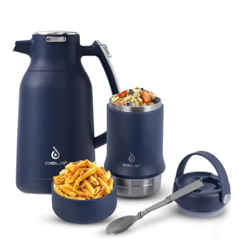 68oz Stainless Steel Thermal Coffee Carafe and 20oz Insulated Soup Container, Travel Mug, Hot Beverage Container, Sleek Design, Premium Material, Leakproof Design, Outdoor Enthusiasts, Commuters