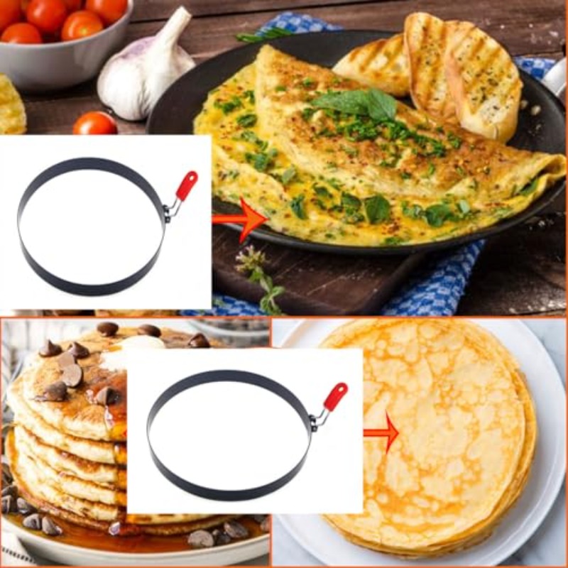 6pcs Professional Egg & Pancake Ring Set with Non-Stick Stainless Steel Cooking Rings (8”/6”/4” Omelette & Pancake Molds) + Bonus Egg Separator & Oil Brush Suitable for Griddle, Frying Eggs, Breakfast, Crepes, English Muffins