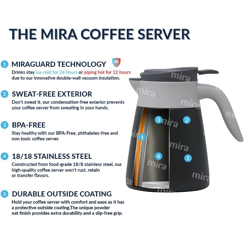 ClayInsulated Coffee Carafe Server | Stainless Steel Vacuum Flask Coffee Dispenser 27 oz Royal Blue