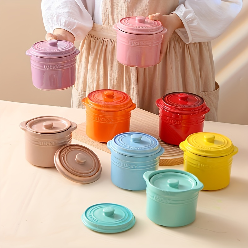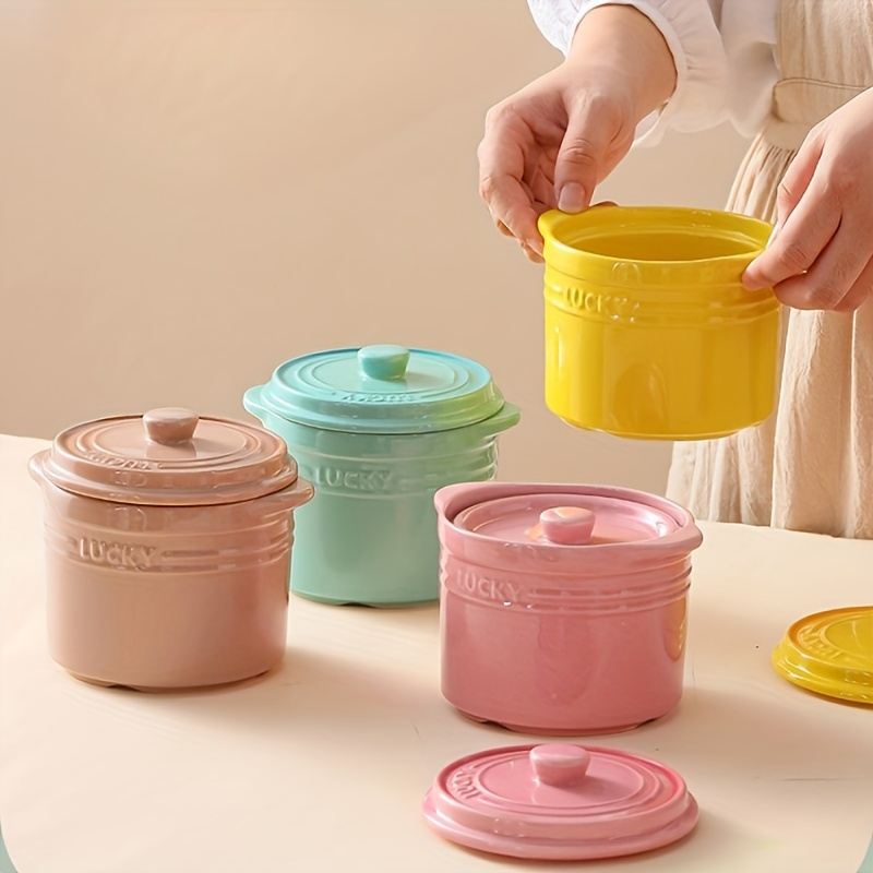 Colorful Ceramic Stew Pot with Lid, Home Use Single Stew Pot, Dessert Pot, Soup Pot, Bird's Nest Pot, Ginseng Pot