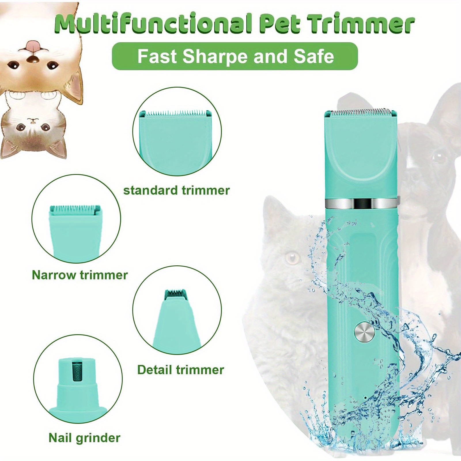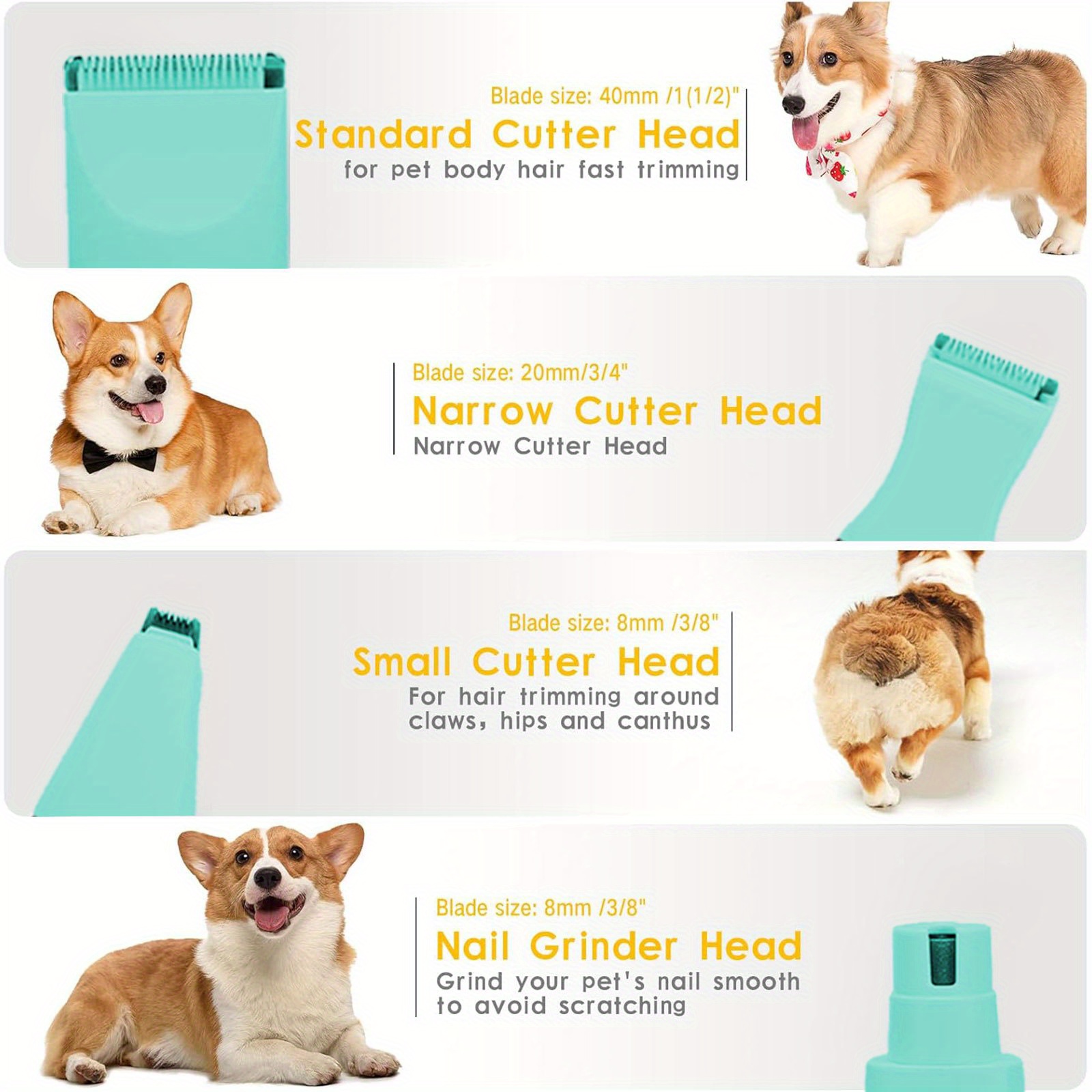 Dog Hair Clipper 4 in 1, Wireless Hair Clipper for Cats, Pet Wireless Grooming Set Low Noise Dog Hair Trimmer, USB Charging Dog Claw Trimmer Gift
