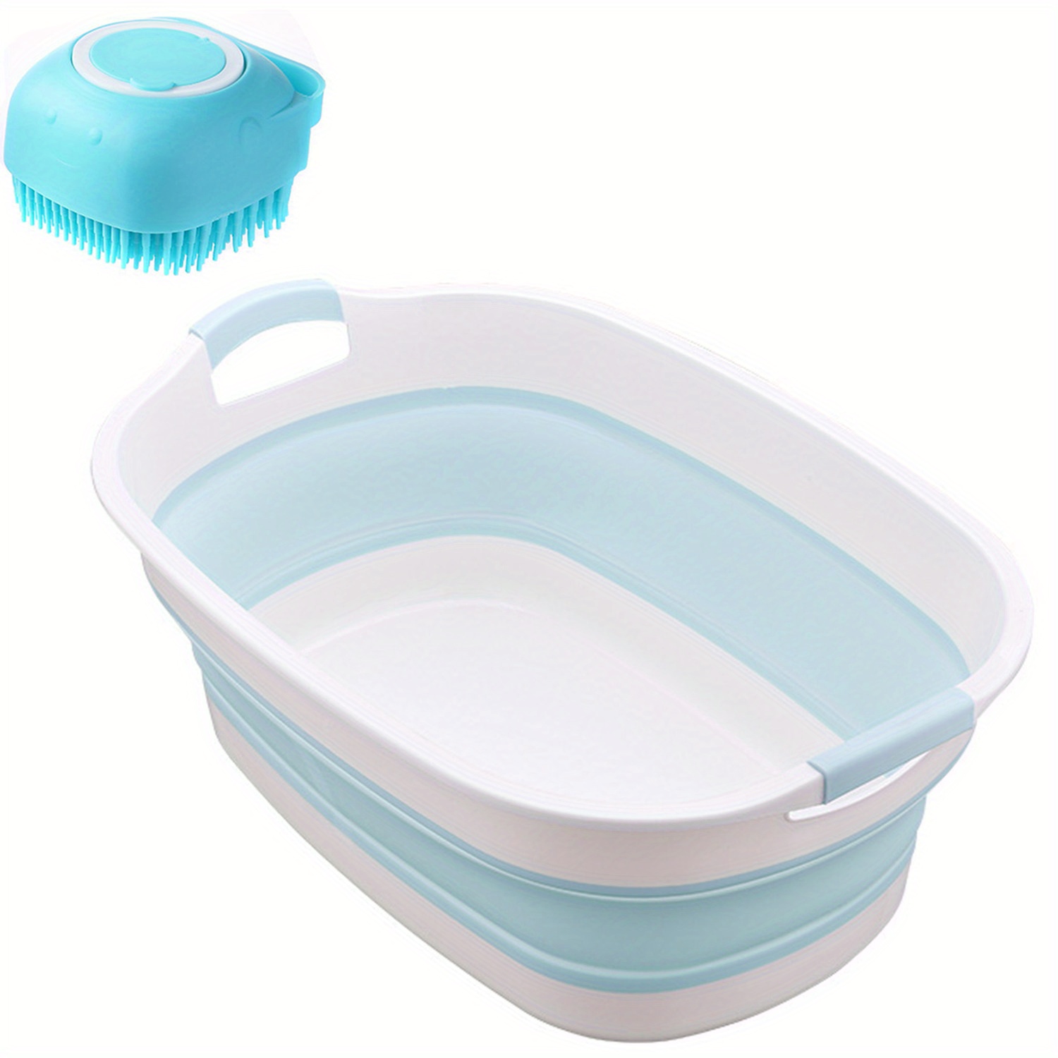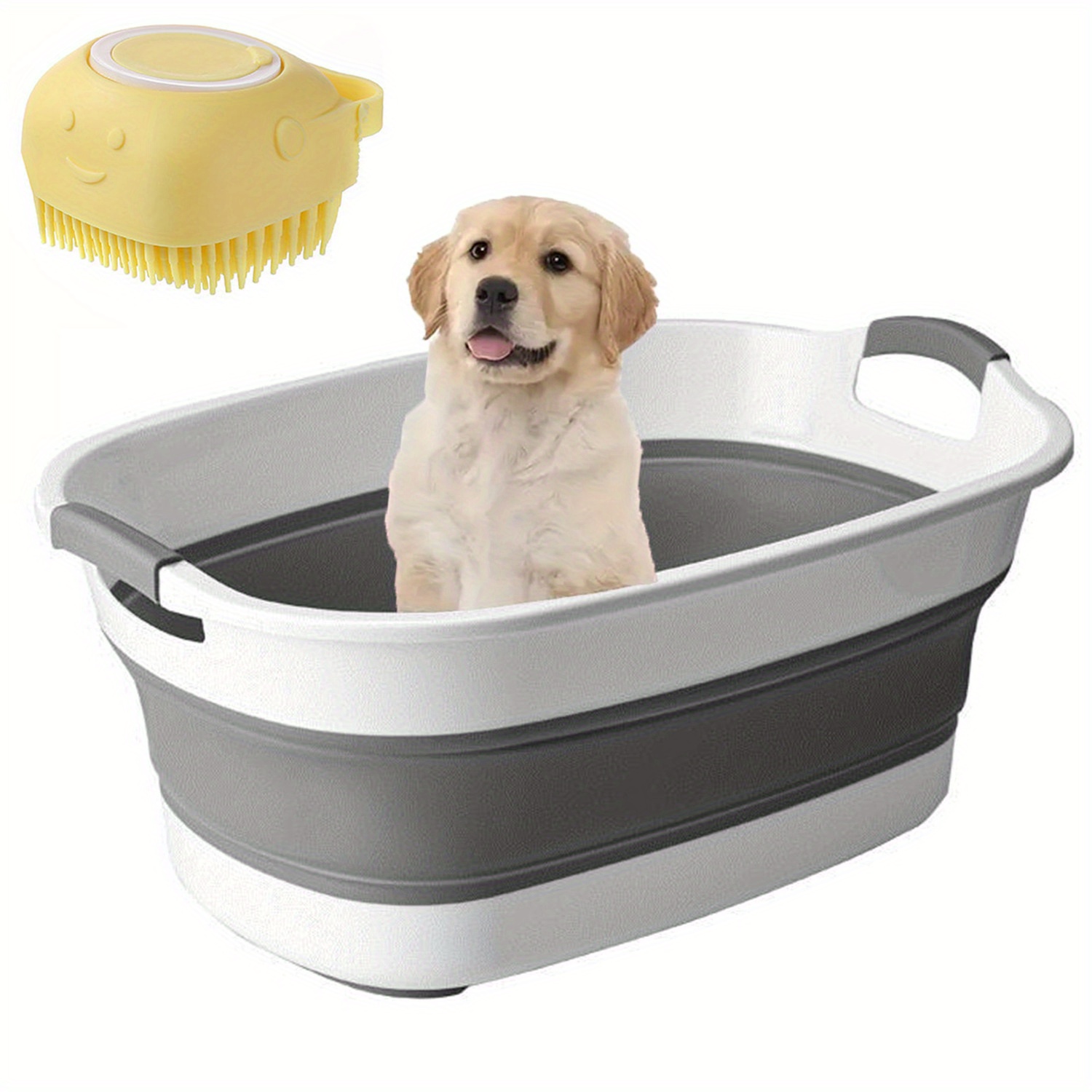 Foldable Pet Bathing Tub with a Drain Plug, Ideal for Dogs, Includes a Pet Bath Brush.