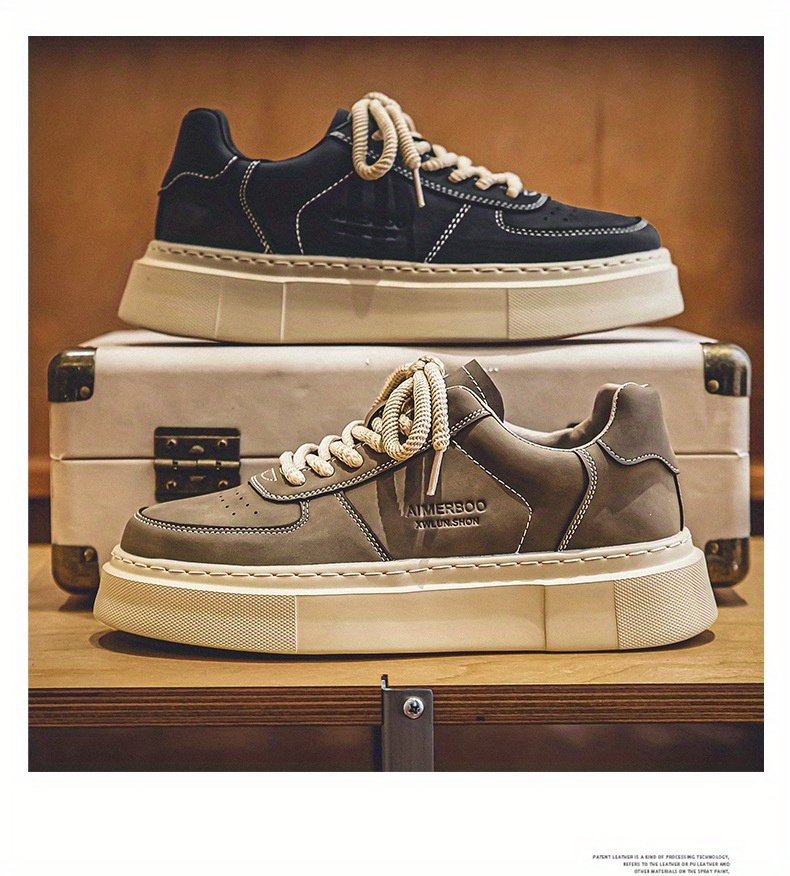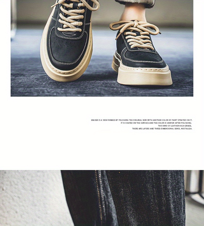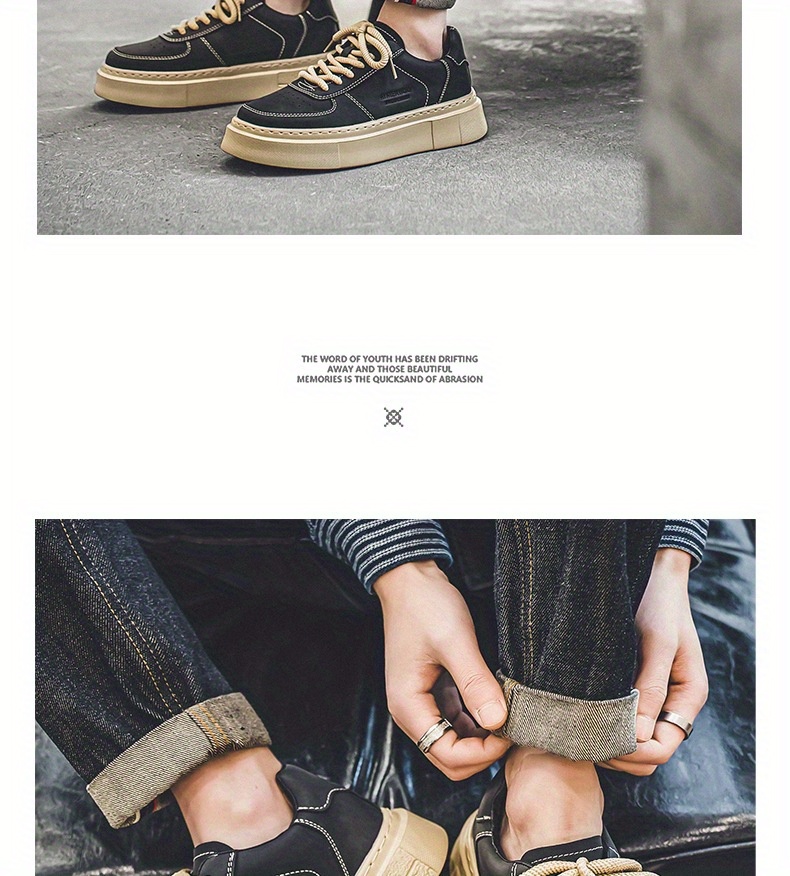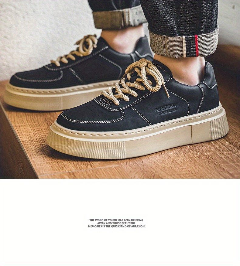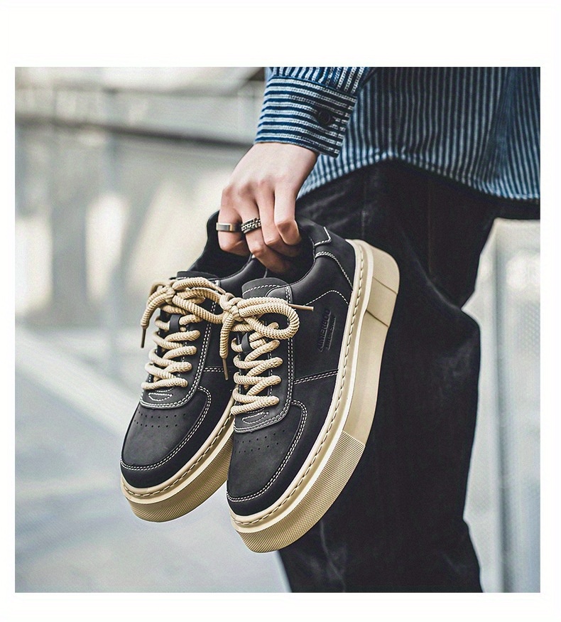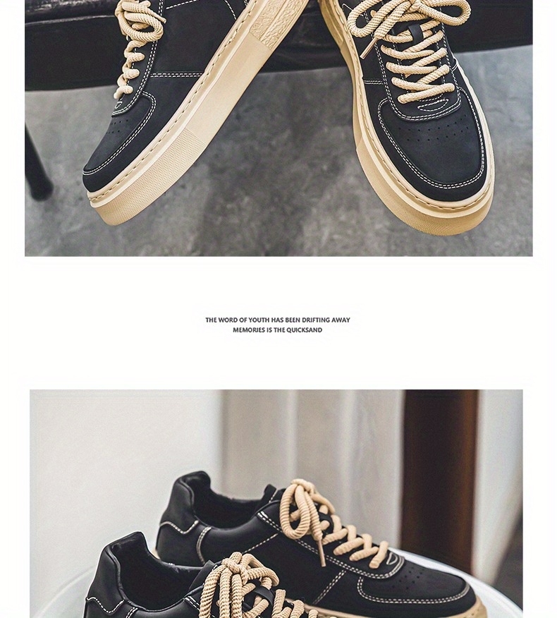 Men'S Casual Skate Sneakers - Low-Top Lace-Up Skate Shoes with Thick Rubber Sole, Durable & Non-Slip, Black & Beige Design, Perfect for Summer, Skate Shoes