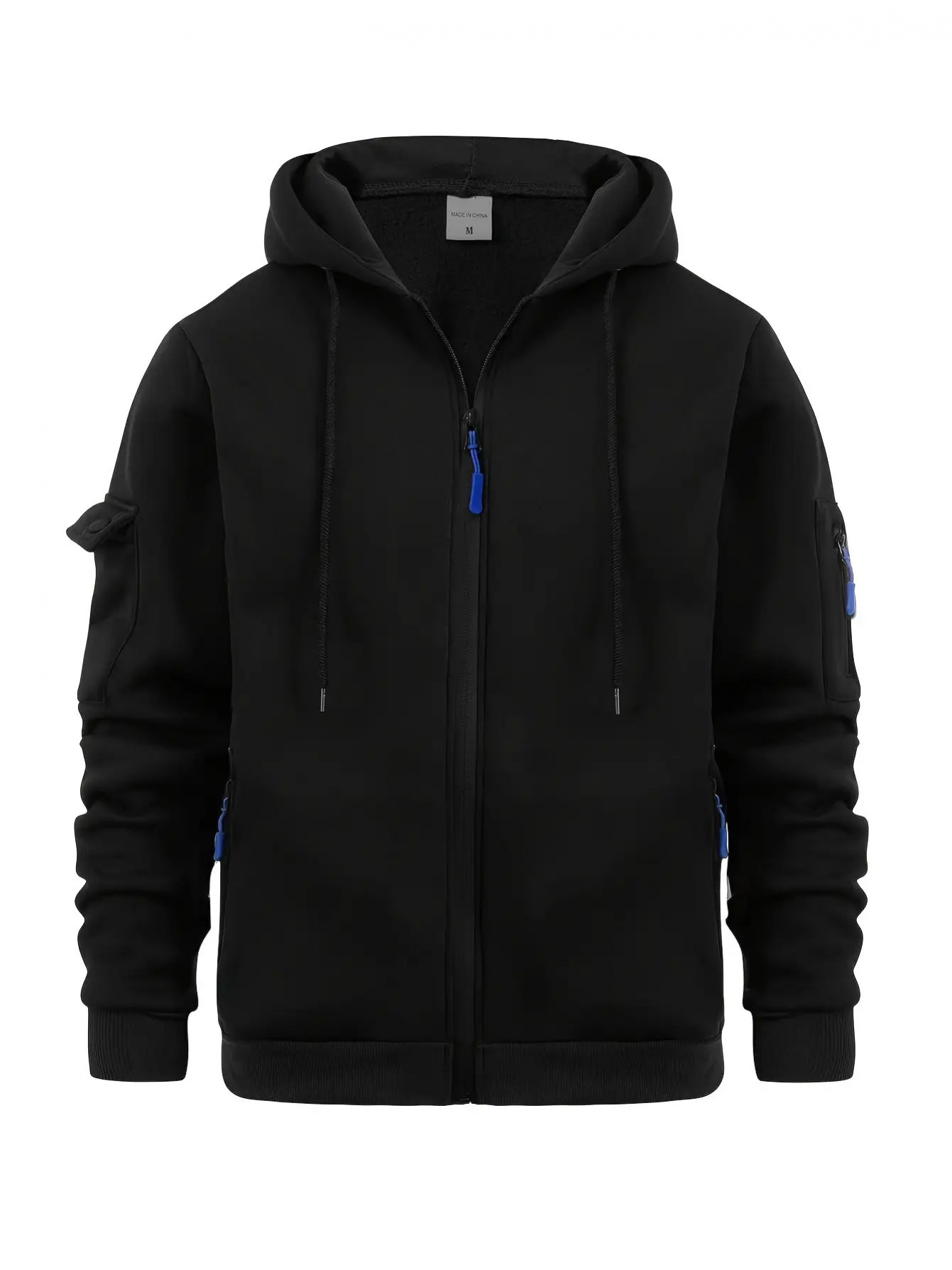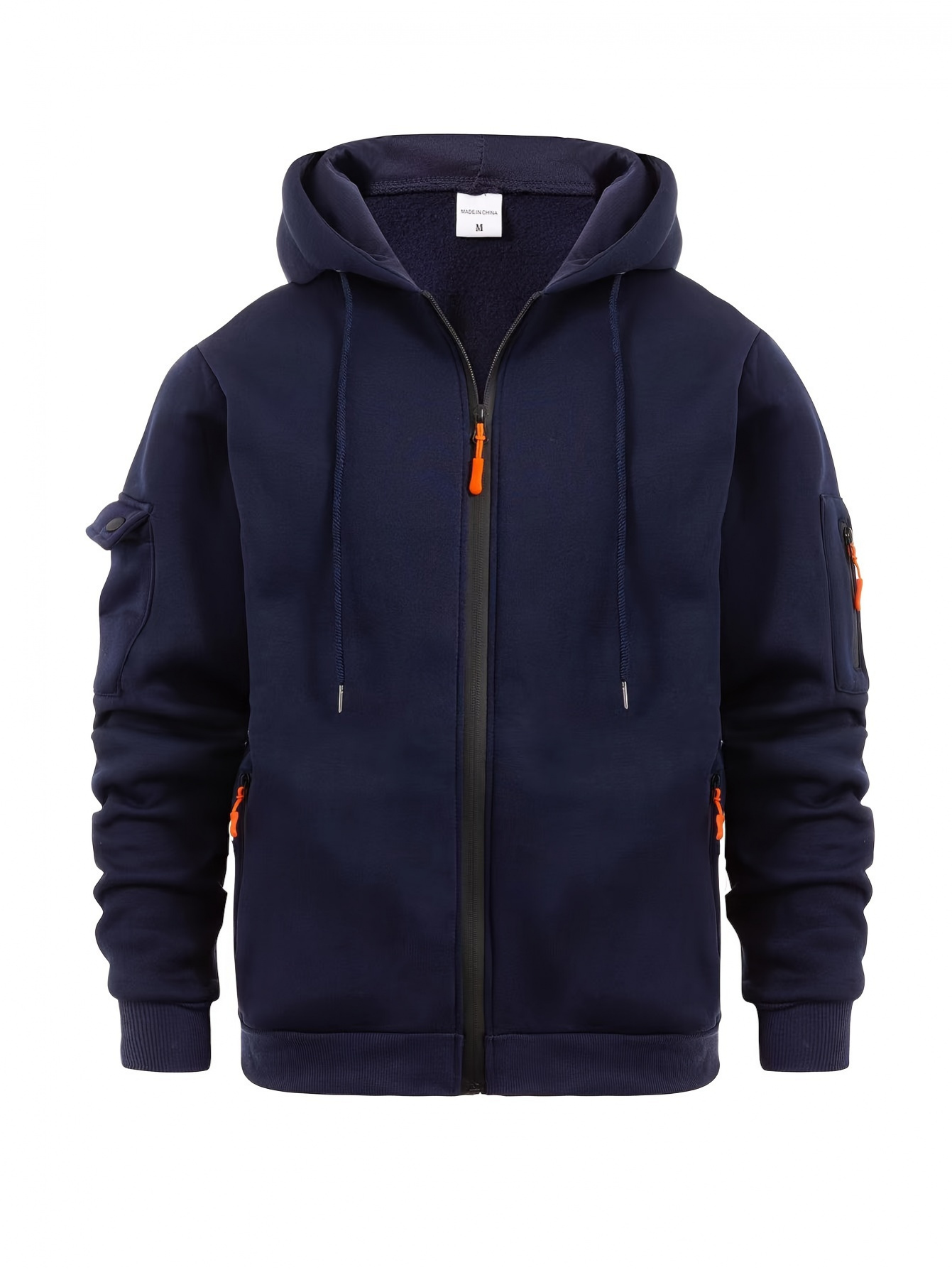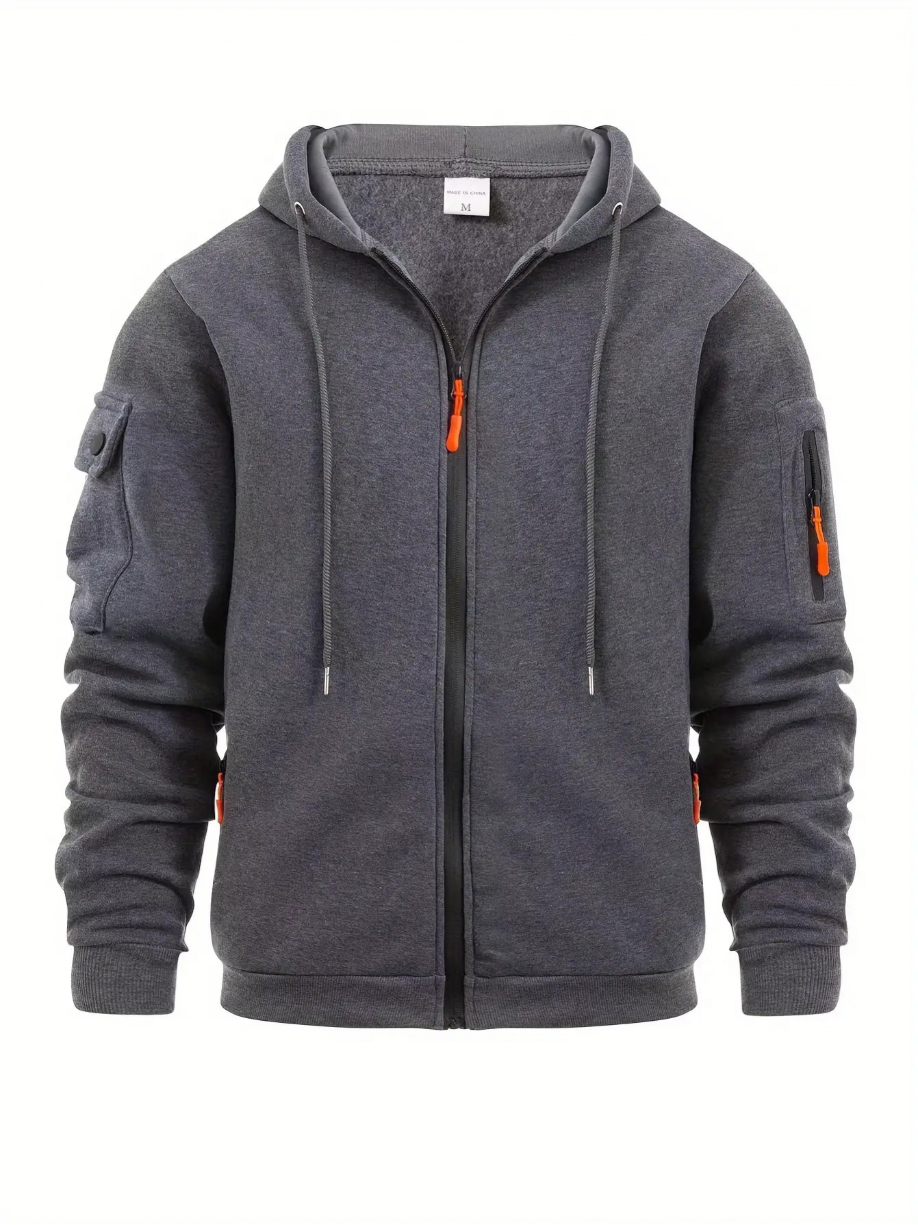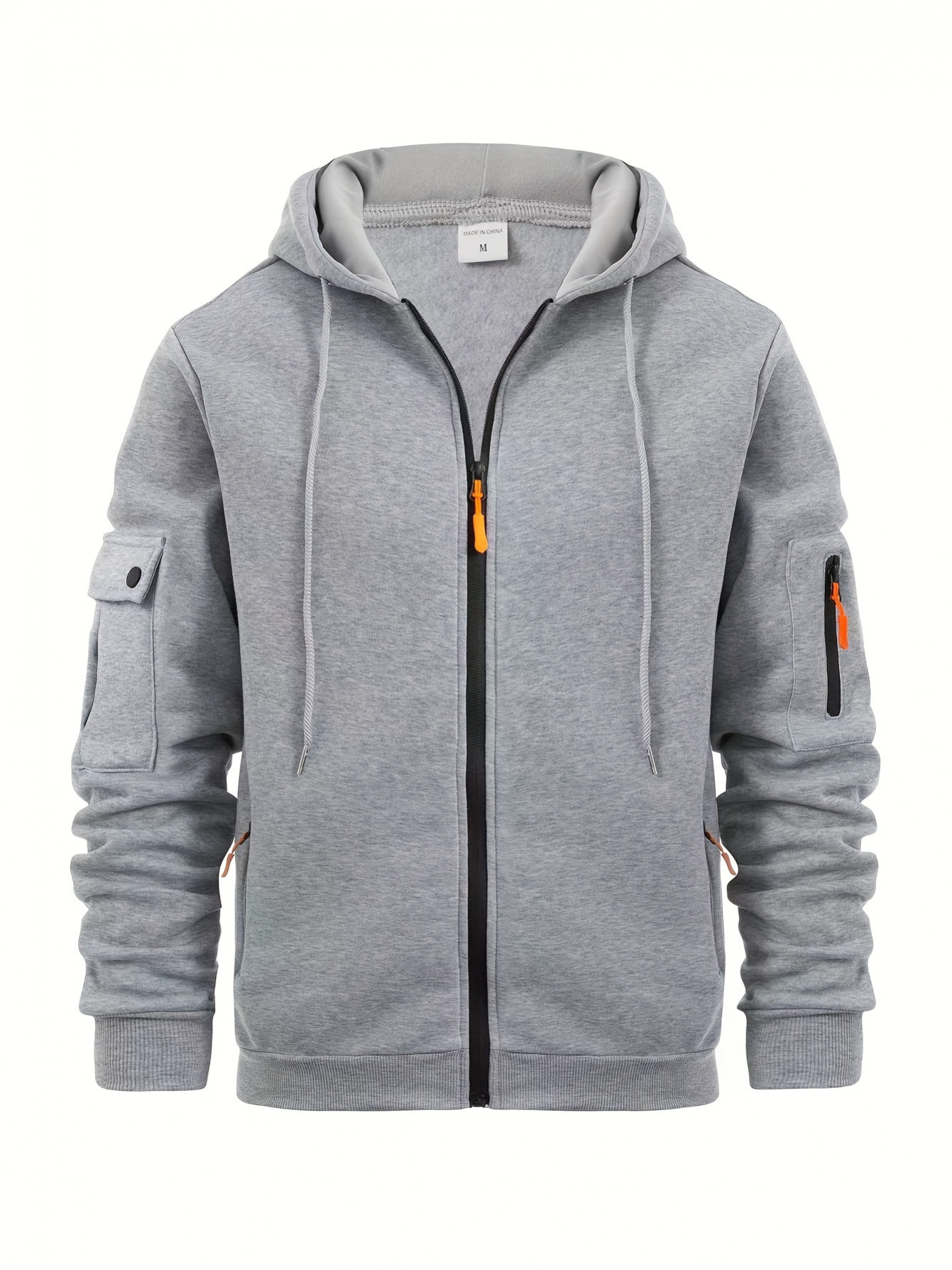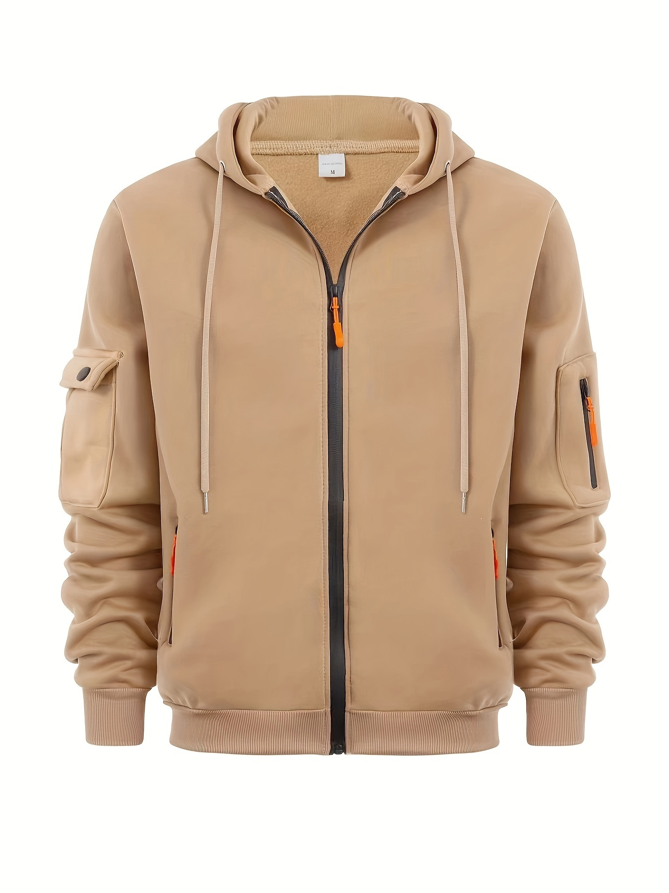 Men's Solid Hoodie with Zipper Pocket, Casual Long Sleeve Zip Up Hooded Sweatshirt for Outdoor, PLUS SIZE, Streetwear Essentials, Everyday Hoodie, Zip Up Design, Classic Style, Quality Stitching, Comfortable Material, Men's Outerwear, Casual Wardrobe