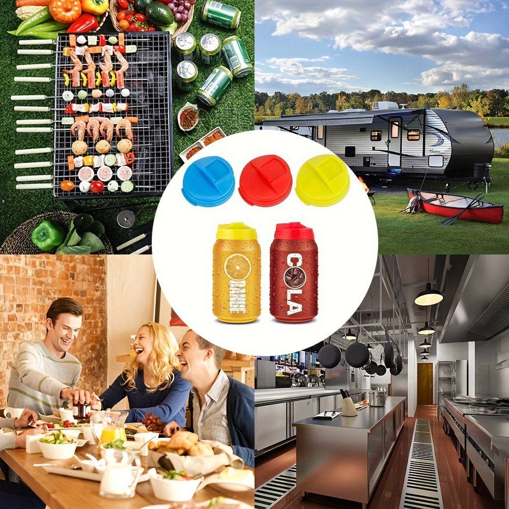of leak proof reusable can lid, keeps drinks fresh and safe, beverage sealing lid, can lid, leak proof sealing lid, press splash proof lid, used for outdoor camping and picnicking, beverage utensil accessories