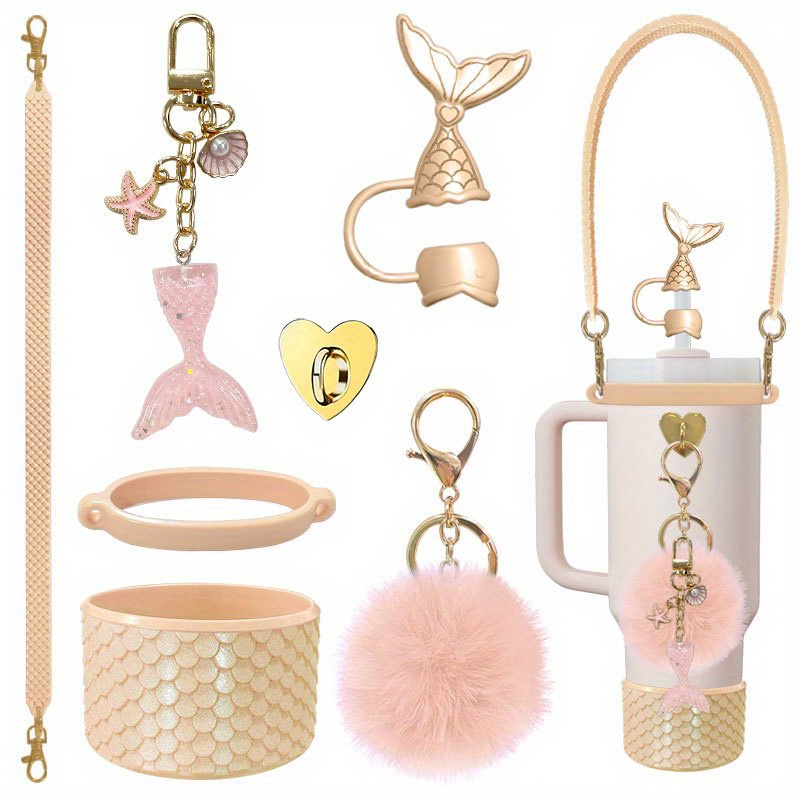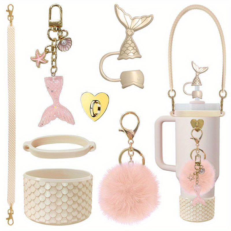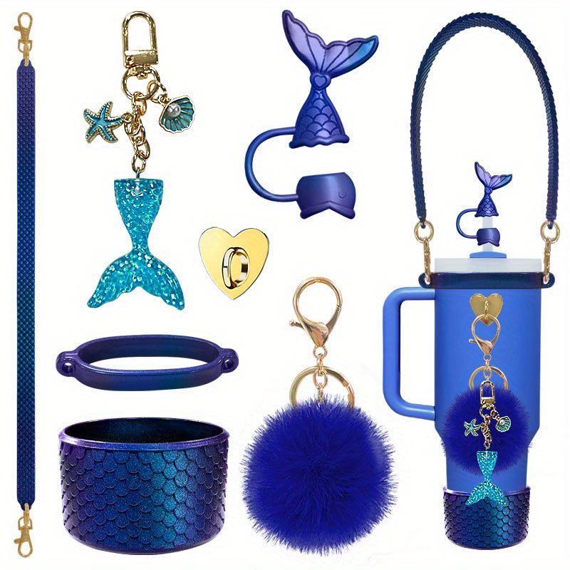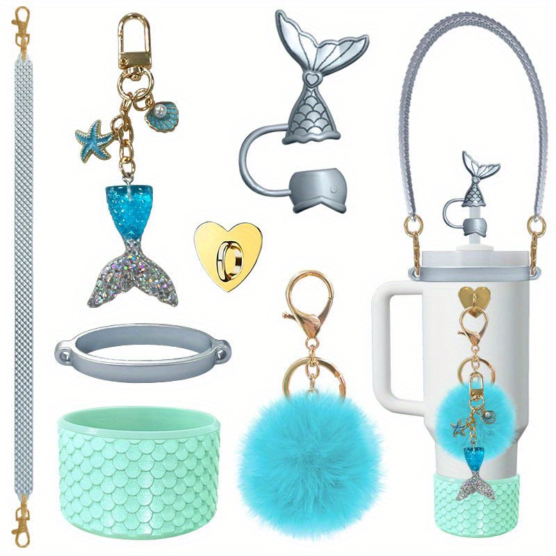 Set of 7 Silicone Cup Holders Featuring Color-Changing Designs of Mermaids And Turtles, Adorned with Floral Patterns. They Are Anti-Slip And Scratch-Resistant